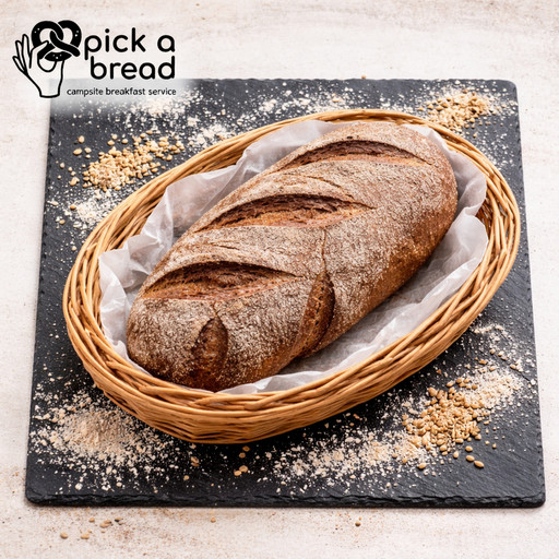 Aromatisches Brot aus Dinkel und Buchweizen, bestreut mit Dinkelflocken.